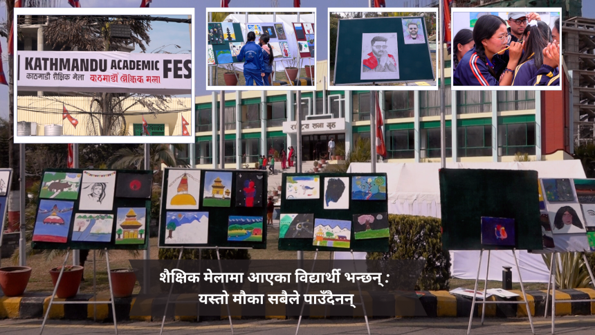 काठमाडौं – १८ महानगरपालिकाले फागुन १६ र १७ गते राष्ट्रिय सभागृहमा काठमाडौँ शैक्षिक मेला आयोजना गर्यो। मेलामा विद्यार्थीहरुले नृत्य, अभिनय, नाट्य, संवादका माध्यमबाट नविनतम सिकाइ गतिविधि प्रदर्शन गरेका थिए । बुक फ्री फ्राइडेअन्तर्गतका ३५ वटा शैक्षिक उपसमूहका स्टलमार्फत रुचि र नतिजा प्रदर्शन गरे।